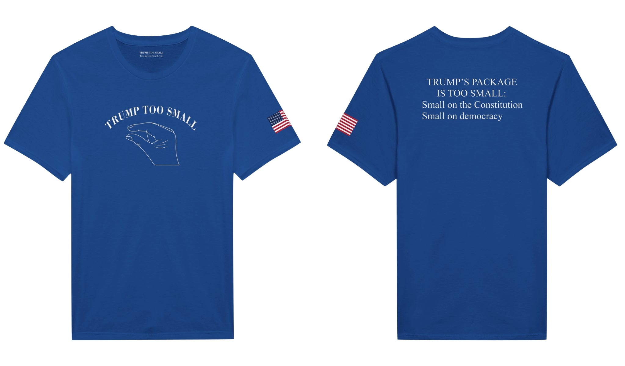 Buy the t-shirt in Medium, Large, Extra-Large, or in the size of Trump’s hands, Small.